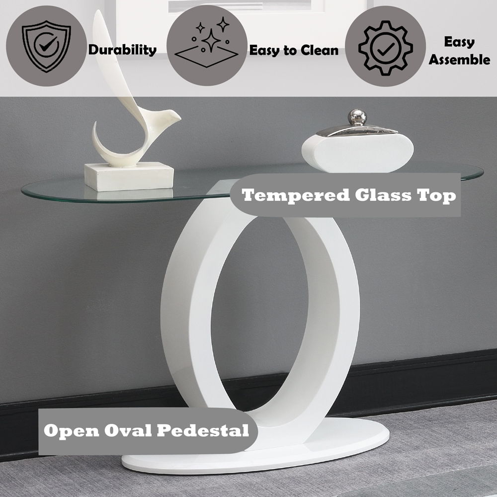 Larry - Sofa Table - Glass Top, White High Gloss Finish 47.0"W x 18.0"D x 30.0"H - 44.0 lb
